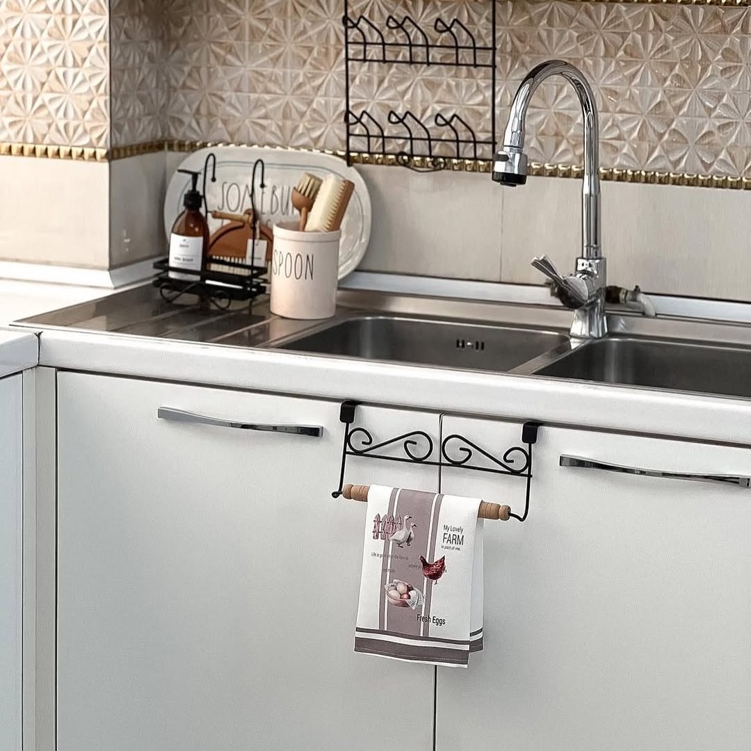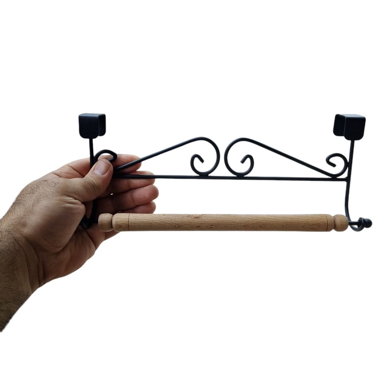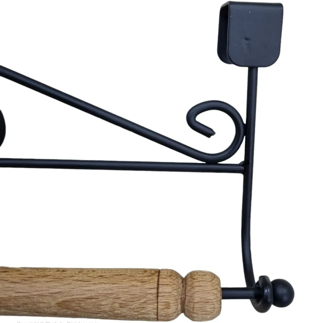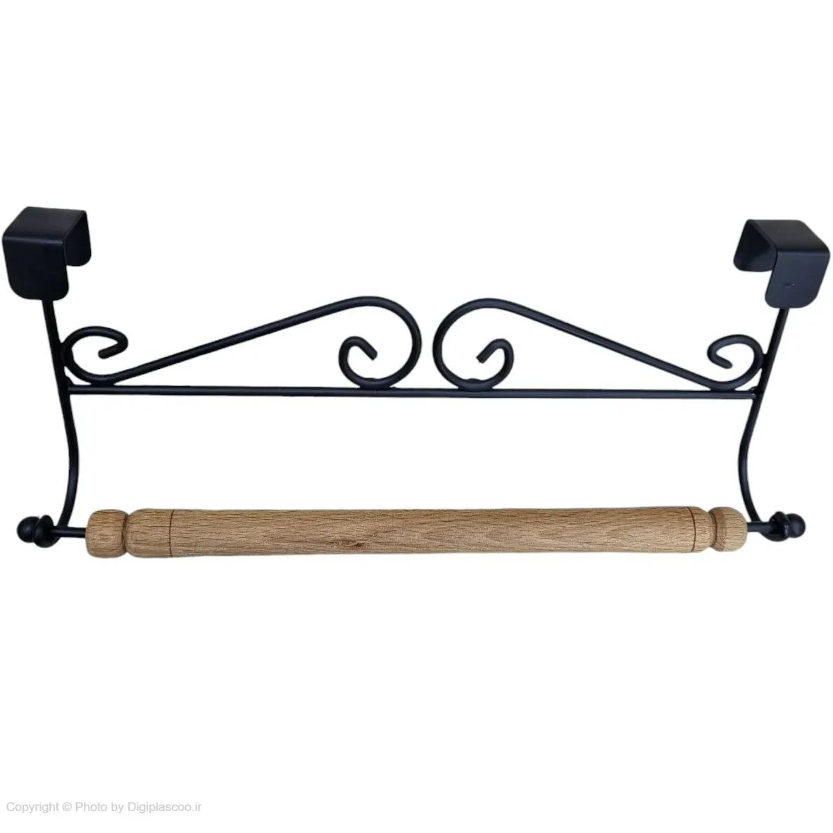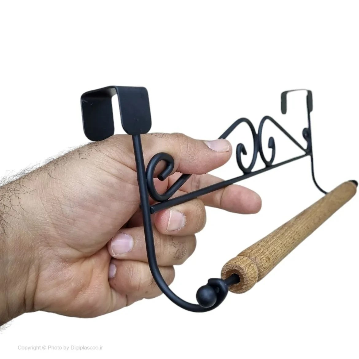 این آویز با طراحی خاص و ترکیب فلز مقاوم مشکی و میله چوبی طبیعی، علاوه بر ایجاد نظم در فضا، جلوه‌ای مدرن و گرم به محیط آشپزخانه شما می‌بخشد.